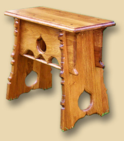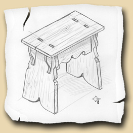 nos soins. Ces deux escabelles ont été réalisées à partir de deux tabourets anglais du XVI° siècle présentés à plusieurs reprises dans la revue "Moyen-Age" (n° 30,32,48).